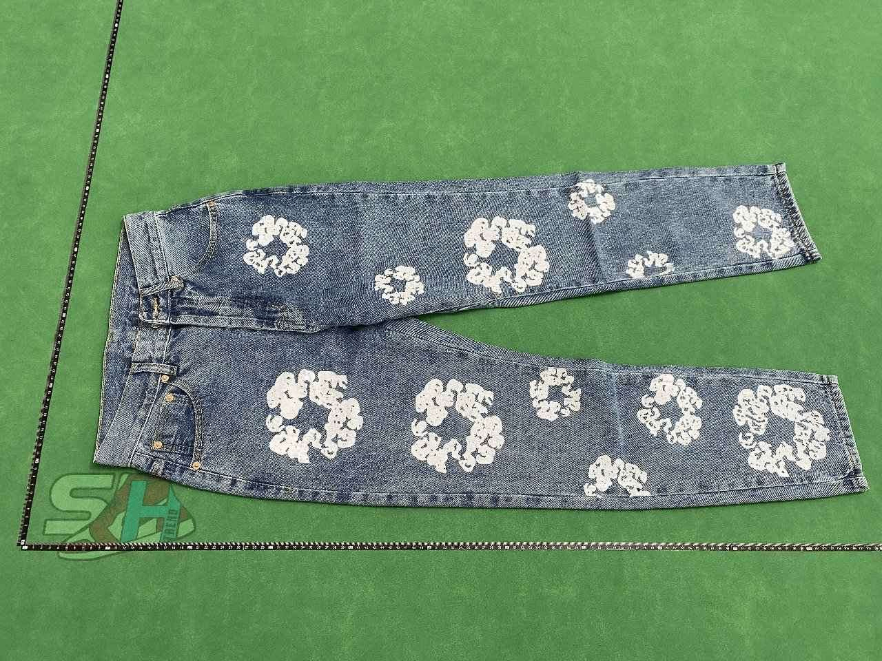 Each Denim Tears jean is a masterpiece of craftsmanship and symbolism. Crafted from premium 100% cotton denim—often with vintage-inspired washes—the jeans feature hand-finished details like distressing and embroidery. The iconic cotton wreath motif, a symbol reclaiming Black labor history in cotton production, adorns back pockets. Collaborations with Levi’s add classic silhouettes, such as the 1954-inspired 501 fit, while indigo-dyed accents pay homage to the Gullah Geechee community’s indigo production heritage.
